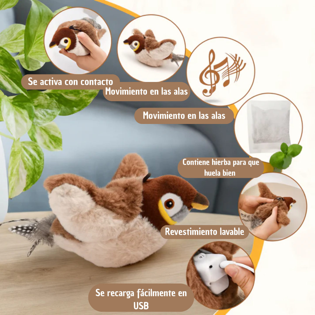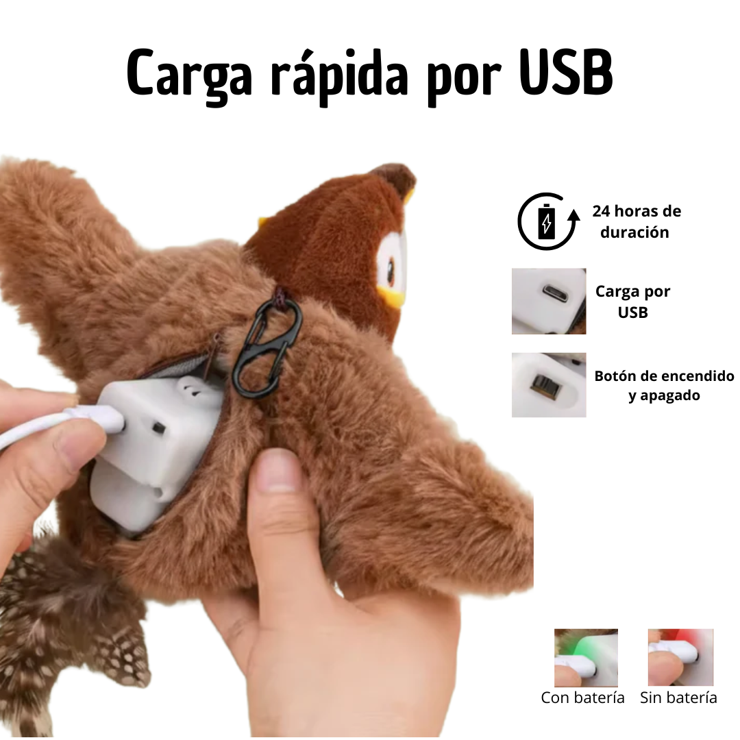 ¡Transforma la rutina de tu gato! Con FlappyCat™, tu felino disfrutará de sonidos realistas de pájaros y alas que se mueven de forma natural. Además, el control remoto te permite personalizar la experiencia y activar o desactivar los sonidos según lo prefieras. ¡Diversión interminable, a tu ritmo!